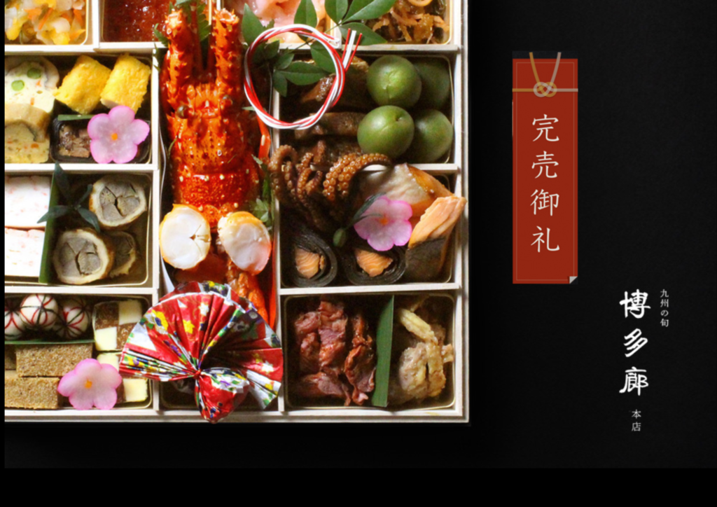 このたび、九州の旬 博多廊 本店にてご案内させていただいておりました、おせちは、多くのお客様よりご好評をいただき、予定数量をすべて完売いたしましたことをお知らせ申し上げます。